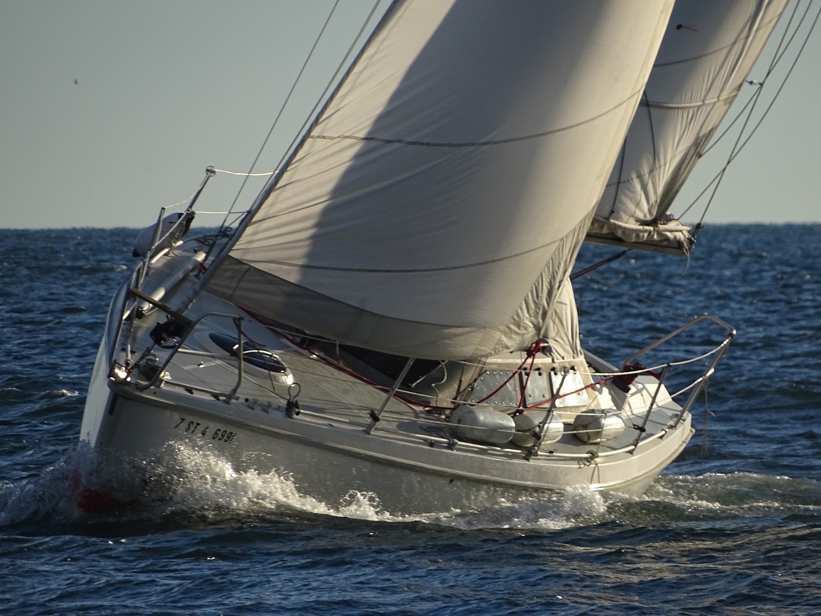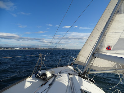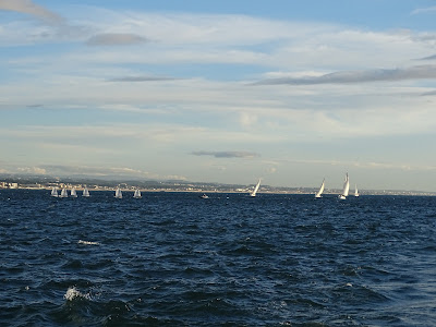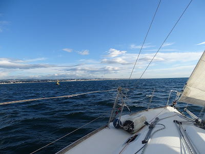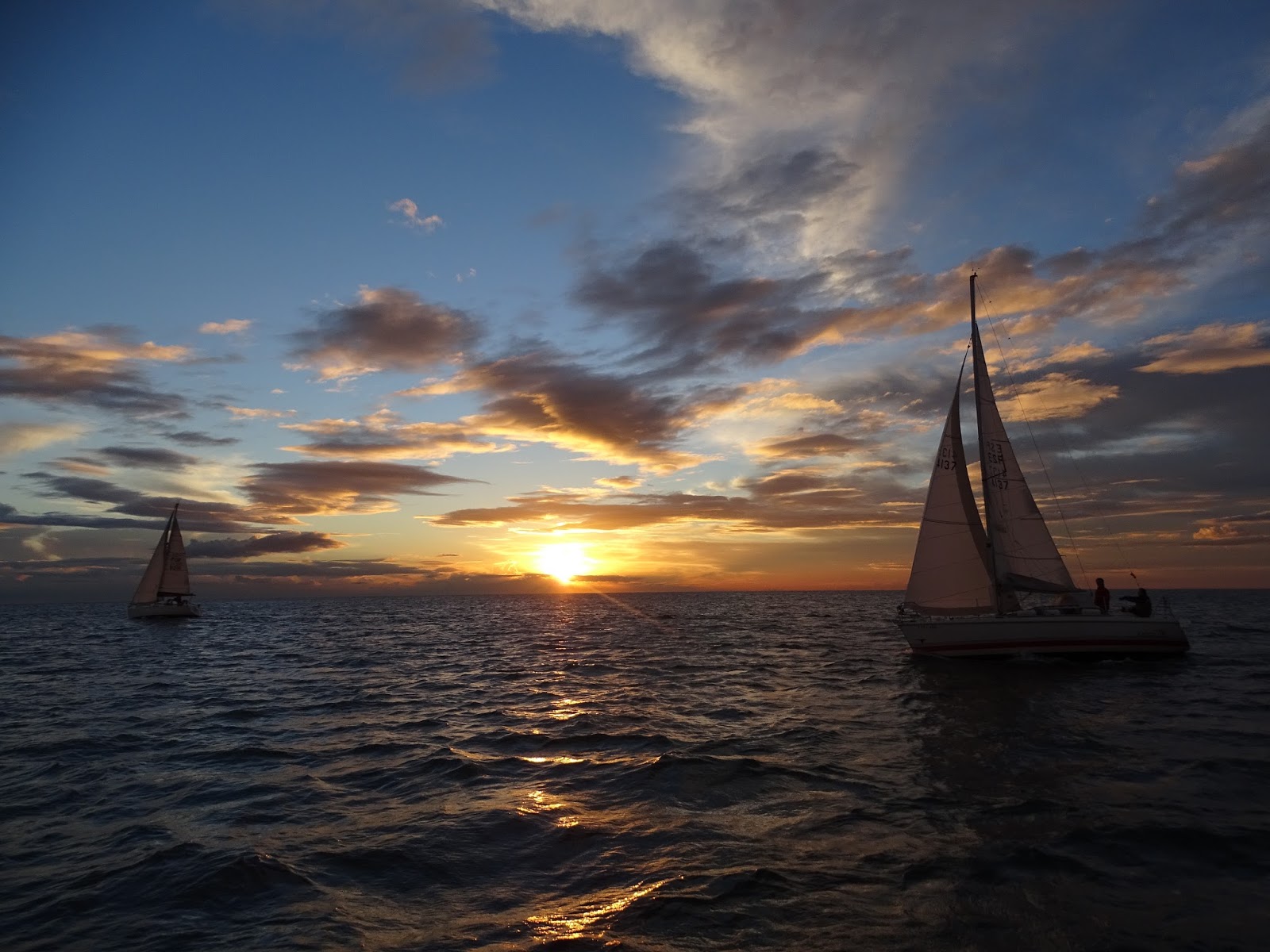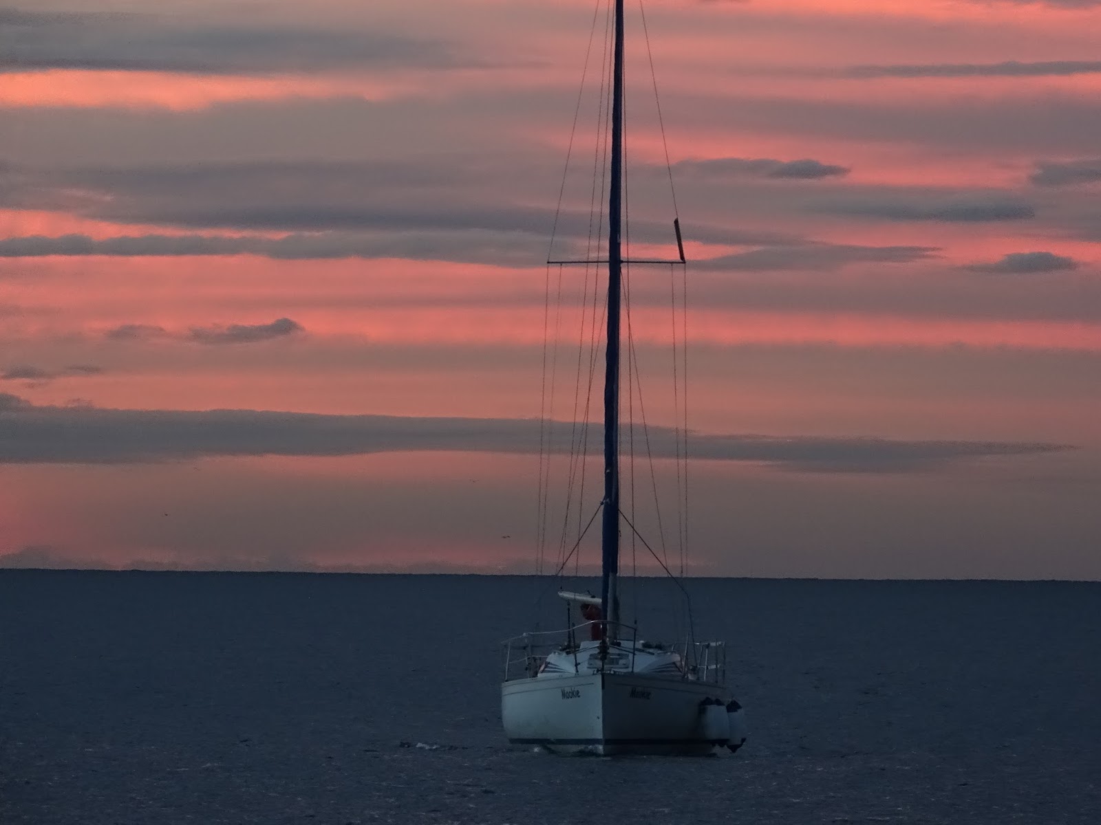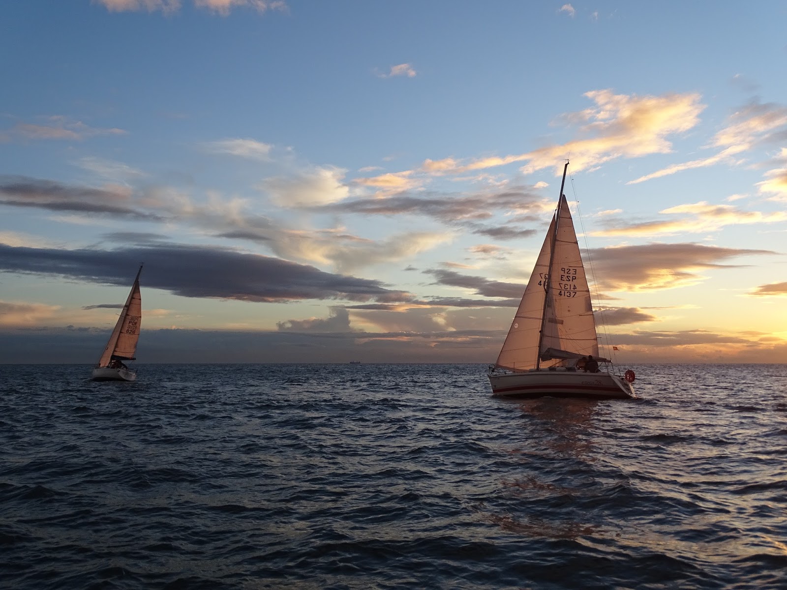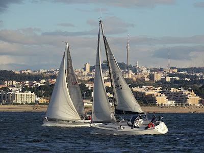 Foi com o Sol a despedir-se e a noite a apresentar-se que se virou de bordo e se iniciou o regresso. Ambiente digno de ser vivido, mar e vento repousado e certo, as cores do céu, o horizonte, a cor do mar, o cantar do vento e do cortar da água, aquela serenidade que nos para no tempo, cena de filme...