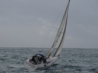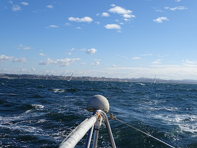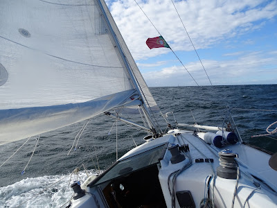 Dureza, ventos entre os 20 e 23 nós, vaga curta e desencontrada, 1 rizo na grande, genoa a 50% (no Bogavante), molhado..., surfadelas na vaga muitas vezes acima dos 9 nós, um pico ou outro a chegar aos 10 (no Bogavante).