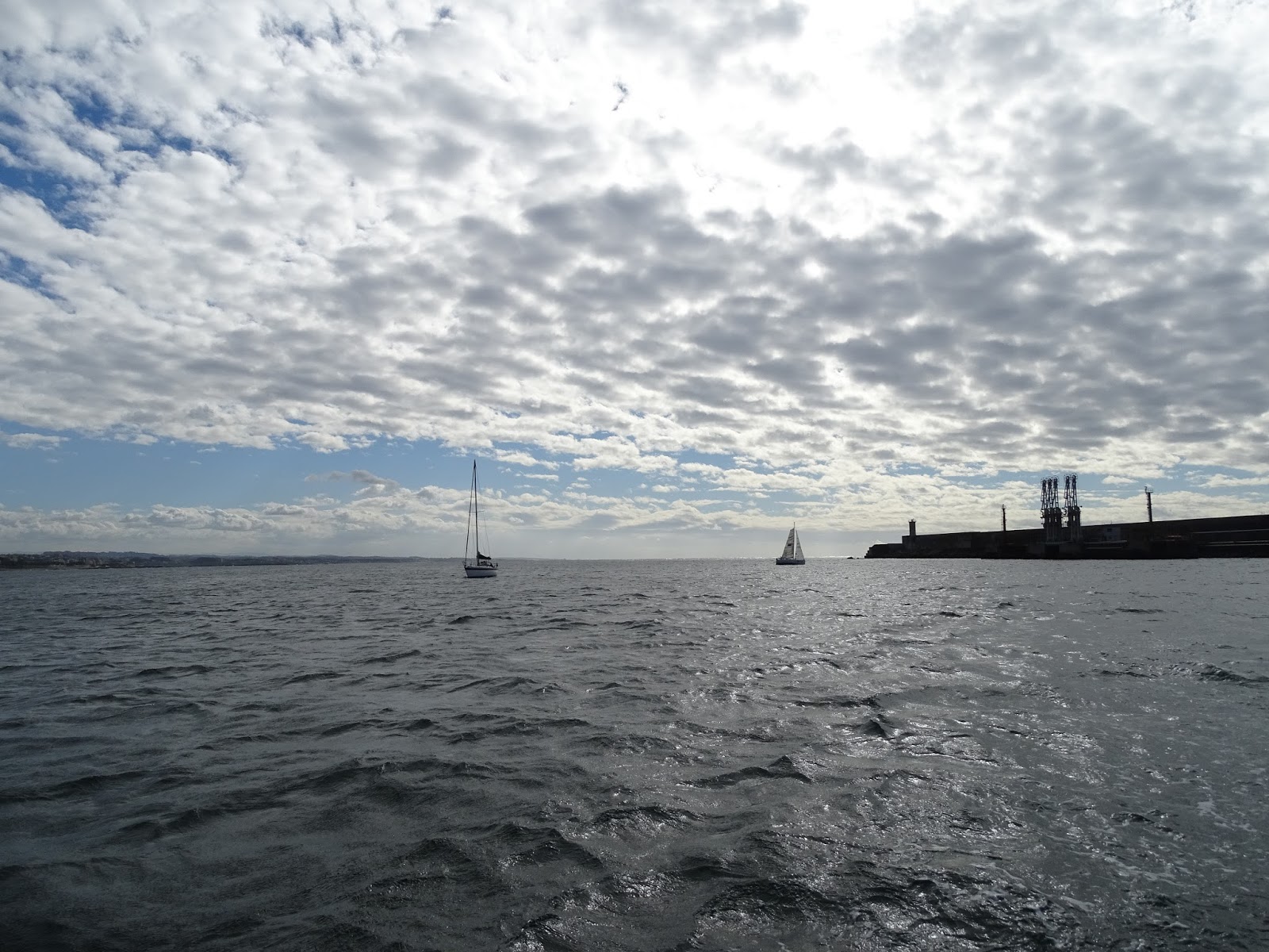 Manhã de Sábado, mar desencontrado com vaga de fundo na ordem dos 3 metros que batia violentamente na costa, vento do quadrante sul entre os 15 e os 20 nós a anunciar a chuva que se previa para a tarde.
