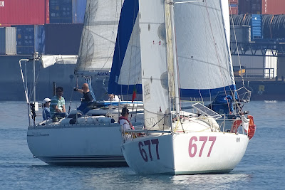 Percurso à vela foi curto pois o vento mais não deixou... de tal modo que nem ao Douro se conseguiu chegar. E para o regresso ao local combinado para a "merenda" ao largo da Praia de Matosinhos, aos bons serviços do vento do porão se teve que apelar.