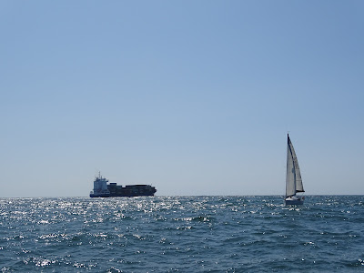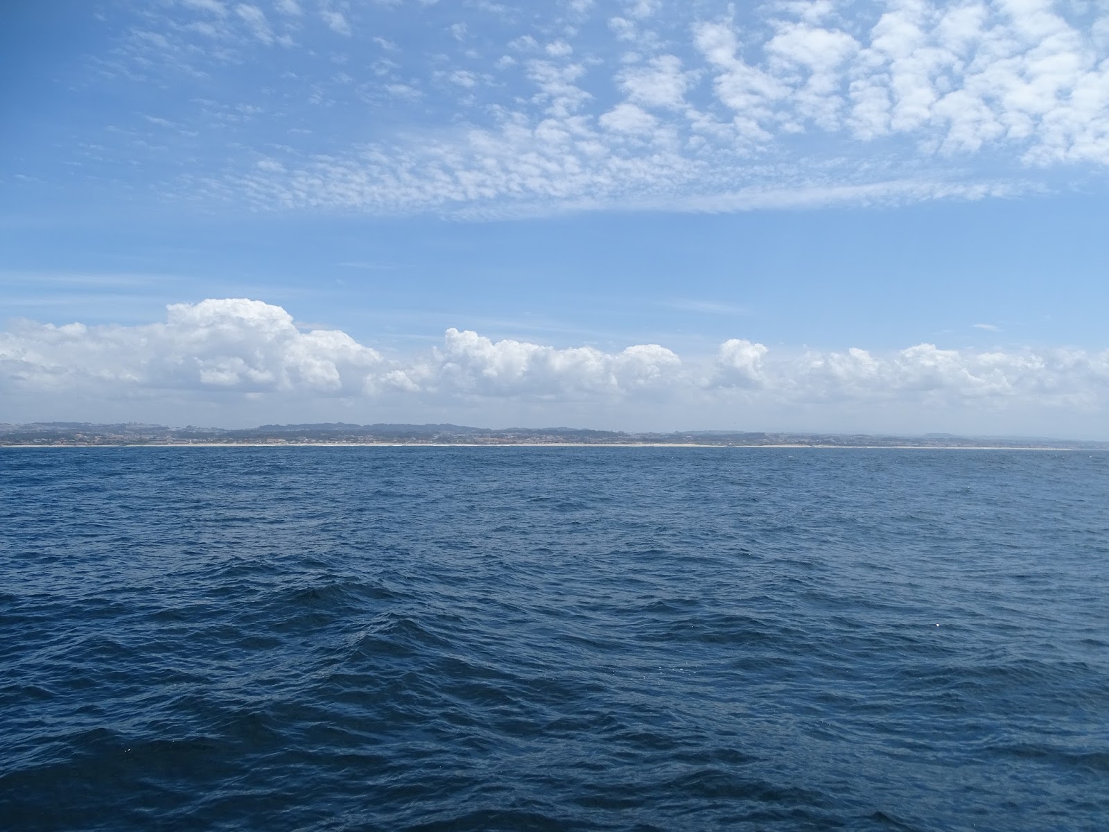 Sol, 10 a 12 nós de vento, mar de alguma vaga mas nada de mais, algo desencontrada como é típico do sudoeste, um dia excelente de vela.