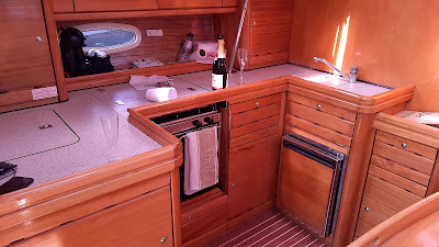 Amarrados as famosas naus nos seus berços, visita ao Bavaria 46 se seguiu, com brinde à amizade e ao sucesso deste novo empreendimento dos amigos Paulo e Pedro. Nau de tamanho imenso, de tal modo que chegaram a ser levantadas desconfianças injustificadas de oligarca russo metido no meio do negócio… um espaço interior brutal, com 4 quartos e 2 WC, um salão enorme, um poço e convés enorme. Um excelente veleiro para umas férias de um grupo de amigos ou de família , exigindo porém que entre destes haja pelo menos 2 pessoas com experiência para o navegar, pois é tudo em grande e colocá-lo num lugar de marina é já mais exigente. E para os interessados, informa-se que este veleiro vai estar brevemente em Portimão…