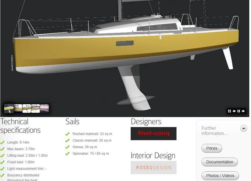 9,14 m de comprimento, mais leve que o POGO 8,5 que vai substituir, mais largo, mais simples, quilha móvel, sem backstay, mastro em carbono...