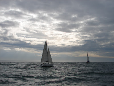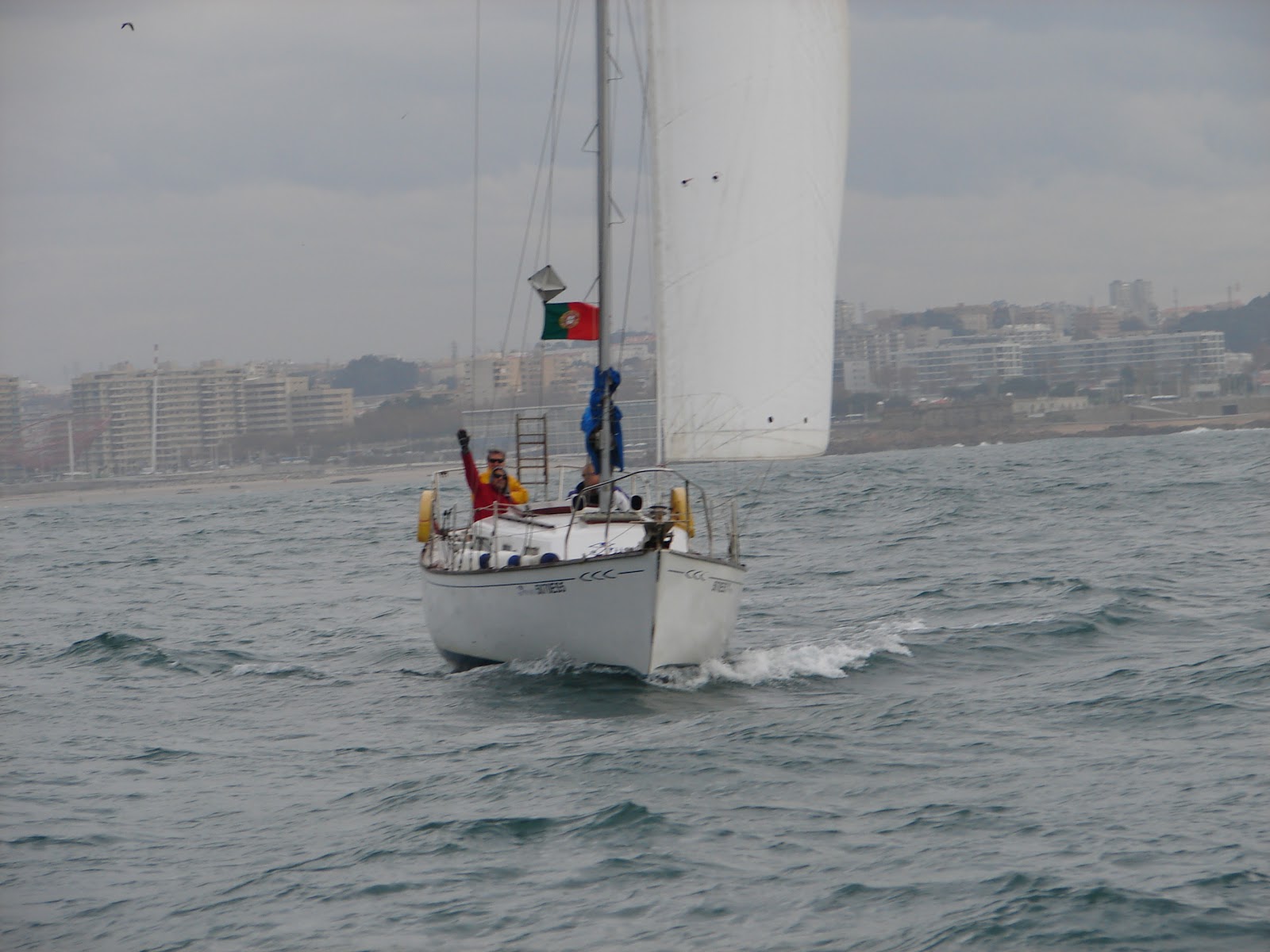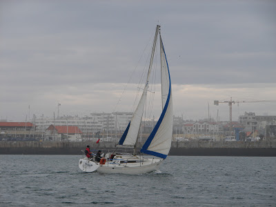Saímos às 11:00h conforme combinado e rumamos a sul na direcção do Douro e boia da Madalena. O vento, vindo de Nordeste muito fraco ao início da manhã começou a rondar para Norte e a subir, a subir... e o céu a escurecer.